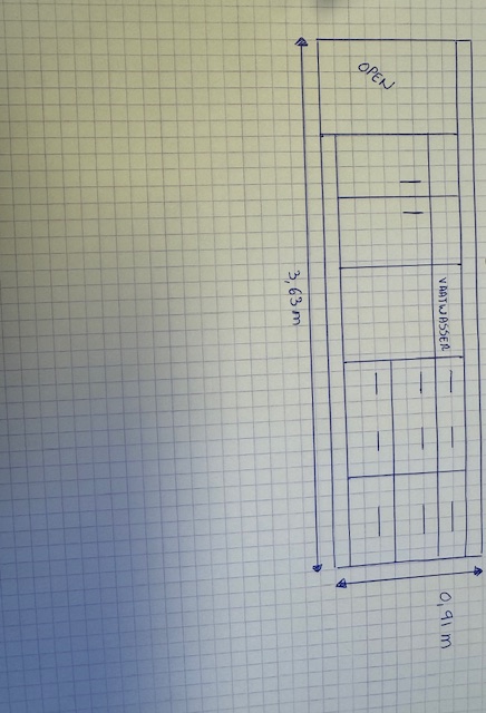 bovenaan 2 rolluikkastjes en 2 open regalen/kasten met legplanken